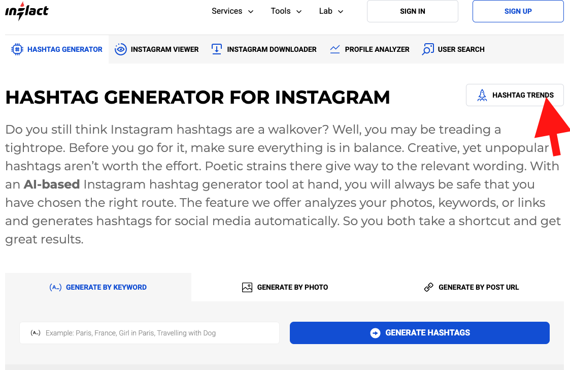 1. Inflact.com 사이트 상단의 Tools 탭 클릭