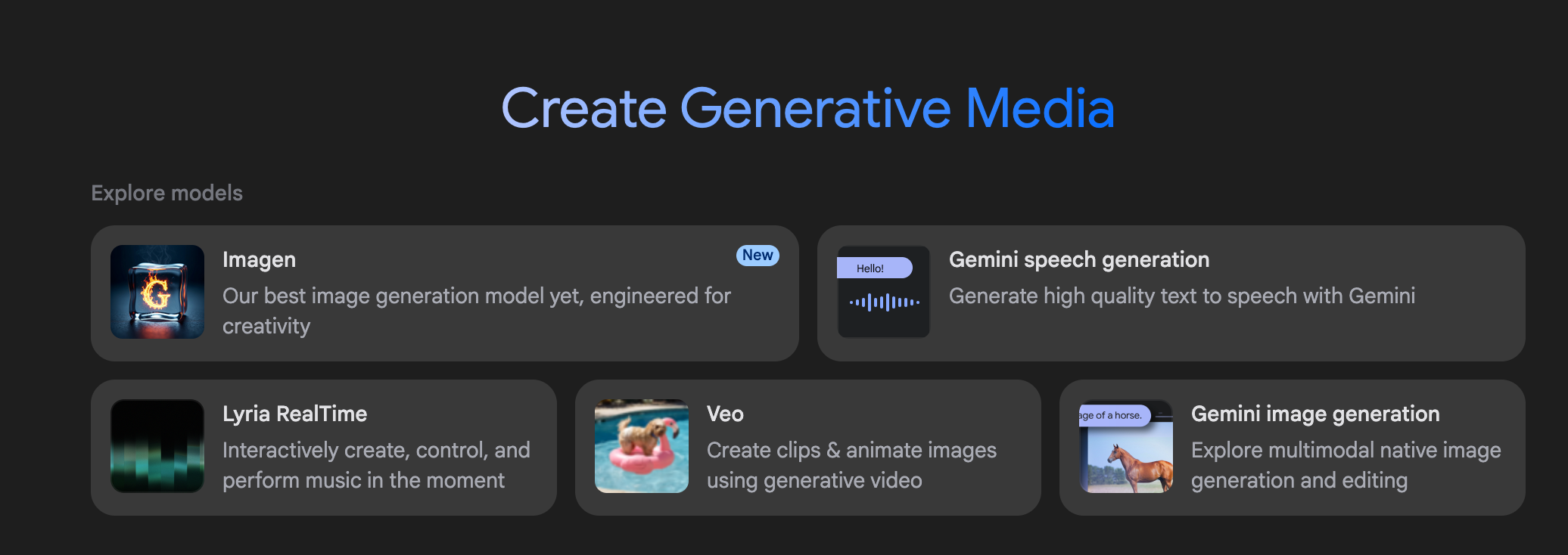 그러면, 아래 사진과 같은 다섯가지 미디어 생성 기능이 보입니다.