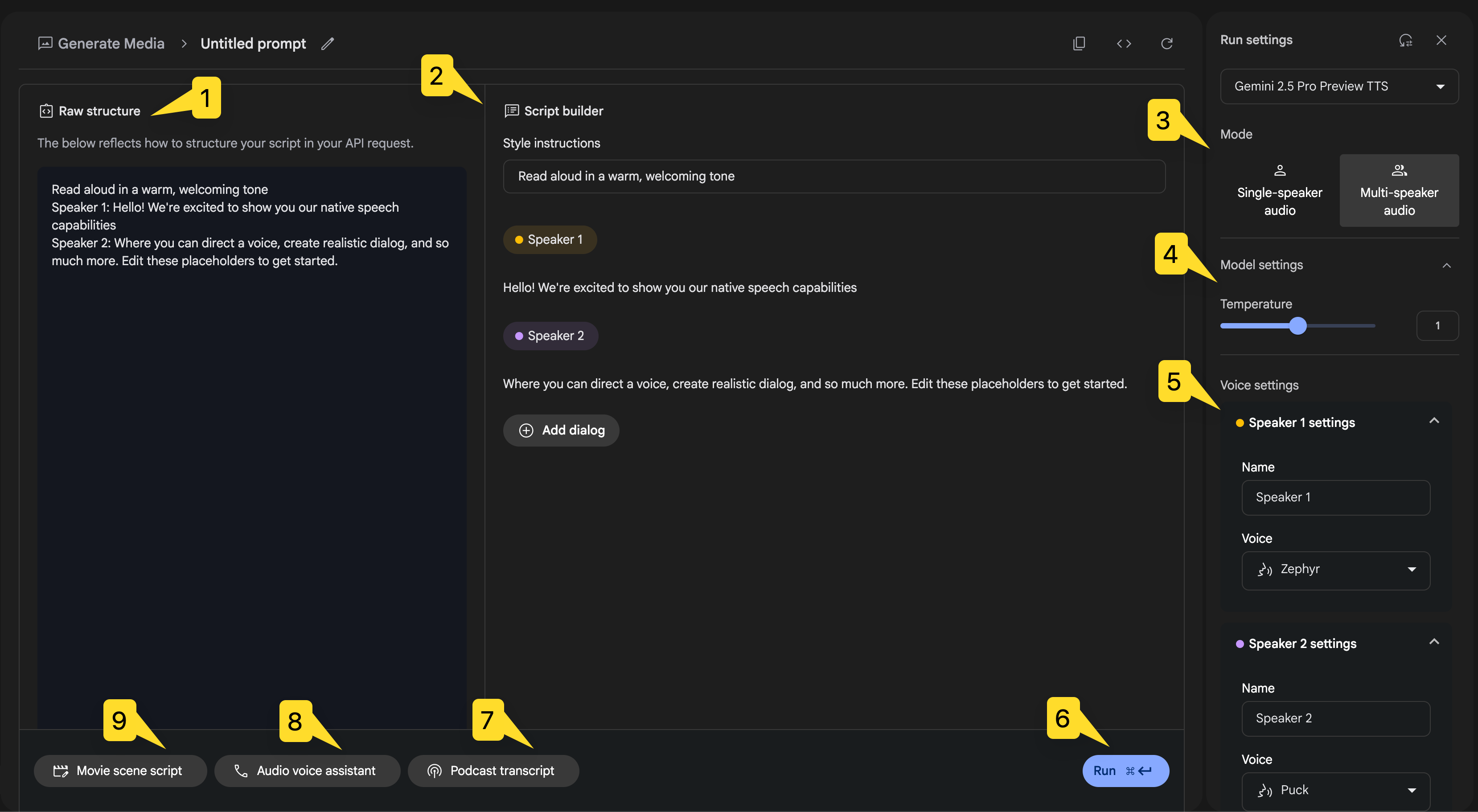 ⑤ Gemini speech generation – 음성 생성