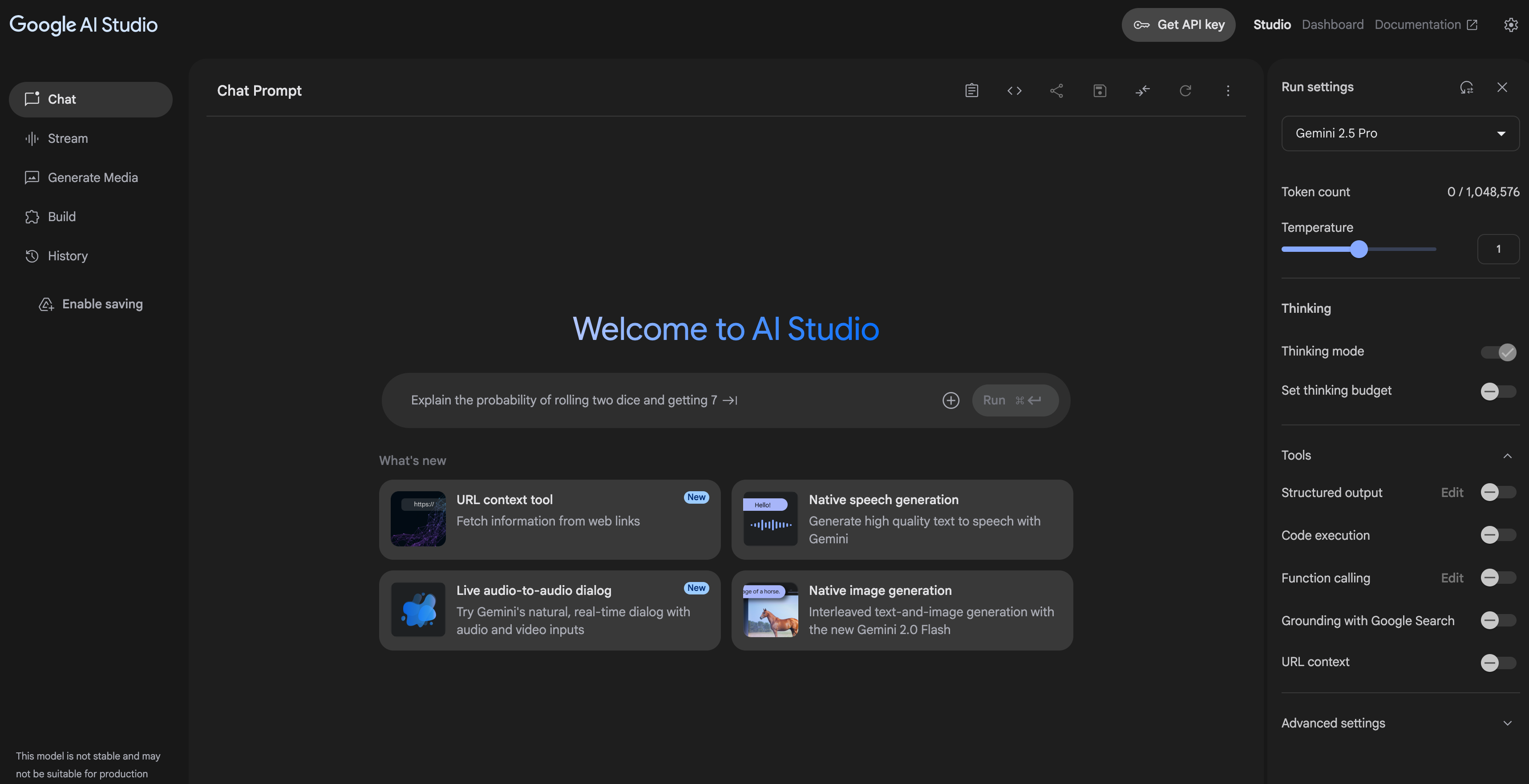 - 구글 AI 스튜디오(Generative AI Studio) 페이지로 이동